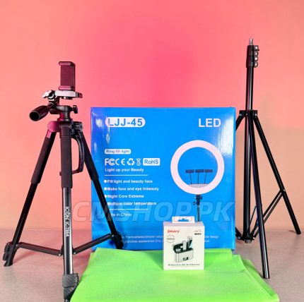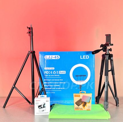 BUDGET DEAL (DIAMOND PACKAGE) (45CM RINGLIGHT, JMARY MW15 WIRELESS MIC, ICON-7864 TRIPOD, GREEN SCREEN, RGB LIGHT)