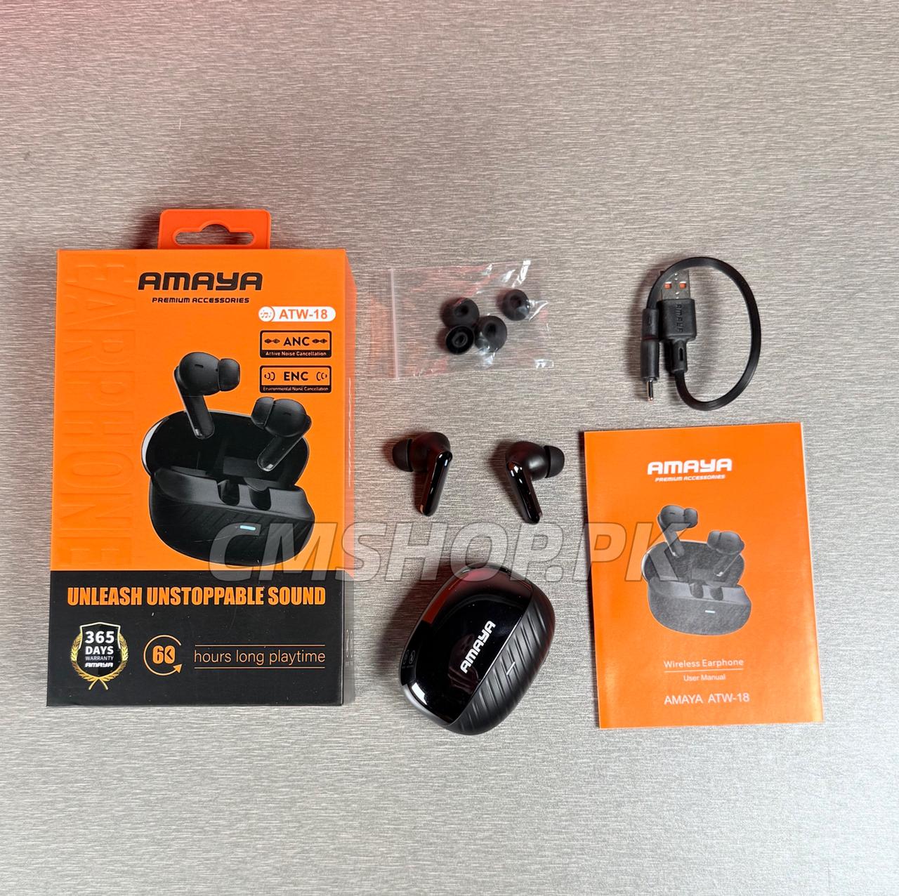 Ready to enjoy high-quality sound and comfort? Click “Add to Cart” to get your Amaya ATW-18 Wireless Earbuds — Pakistan’s trusted choice for Bluetooth earbuds. Fast delivery, genuine product, and great after-sale support guaranteed by CMShop.pk.
